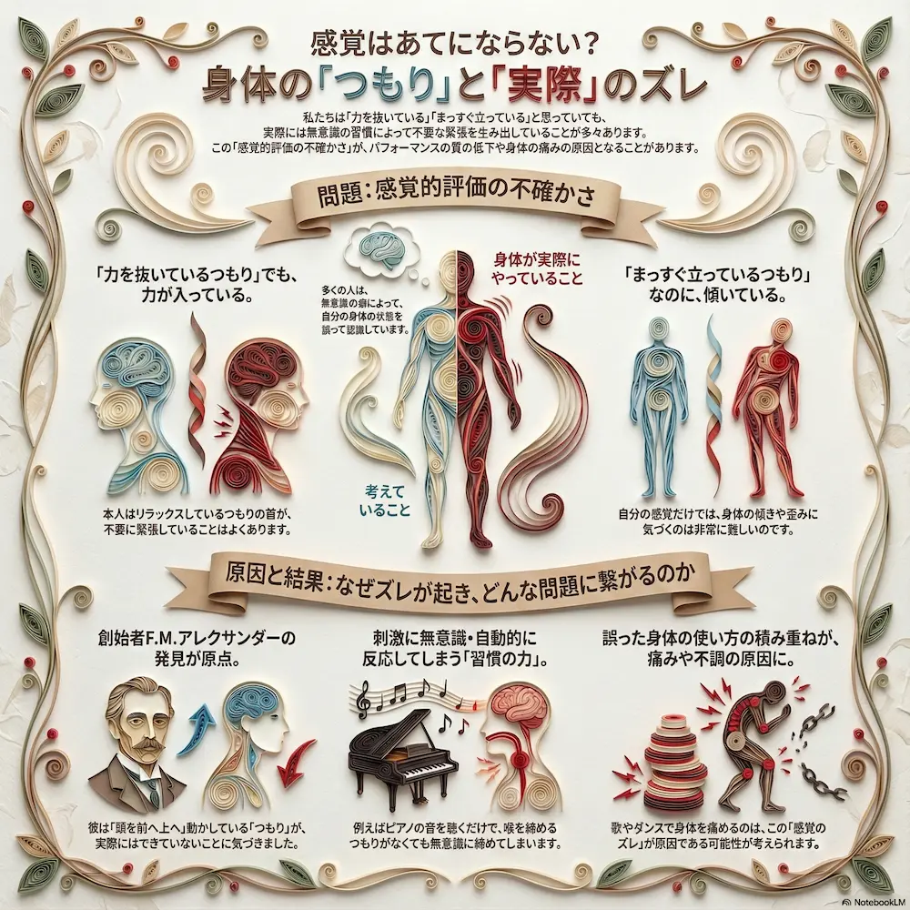 12 052025 2025.12.29 感覚はあてにならない?身体の「つもり」と「実際」のズレ F.M.アレクサンダーは、写真で見るとひげはありません。左下のF.M.はひげありですけど、絵を修正するのはできなかったのでそのままにしてあります。 masako 主婦であり串打ちの仕事もするアレクサンダー教師。 アレクサンダー・テクニークのレッスンを東京都目黒区にて楽しくわかりやすく、伝えていきます。 アレクサンダー・テクニークの理解につながるものはなんでもチャレンジ。ということで、現在は、歌(コーラス多め)、ダンス(soul&lock)、パントマイム(基礎)、をやっていますが、やりたいことが増えてきてます。合唱は高校のときから続けていますが、ピッチパイプを買ったのは最近です。これはハーモニカに似ていますが、吹き方によって音が下がってしまうので、ものすごく自分の使い方を試されます。 2023年9月 アレクサンダーテクニークスタジオ東京(ATST)の教師養成講座を卒業 2023年10月 STAT(英国アレクサンダー・テクニーク教師協会)認定教師の資格を取得 神奈川県立生田高等学校卒業 東京理科大学理学部応用数学科卒業 高校・大学・社会人と合唱を続け現在は楽器としての声を勉強中 1970年生まれ 1児の母 LINE Instagram X Facebook Youtube Contact Post Share Hatena LINE Threads note この記事のタイトルとURLをコピーする