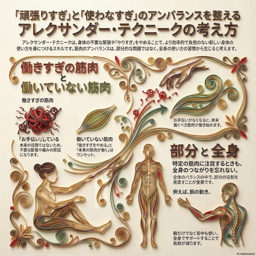 12 122025 2025.12.29 「頑張りすぎ」と「使わなすぎ」のアンバランスを整えるアレクサンダー・テクニークの考え方 文字だけではなく、絵にも修正を入れたので、ちょっと不自然なところがあります。 masako 主婦であり串打ちの仕事もするアレクサンダー教師。 アレクサンダー・テクニークのレッスンを東京都目黒区にて楽しくわかりやすく、伝えていきます。 アレクサンダー・テクニークの理解につながるものはなんでもチャレンジ。ということで、現在は、歌(コーラス多め)、ダンス(soul&lock)、パントマイム(基礎)、をやっていますが、やりたいことが増えてきてます。合唱は高校のときから続けていますが、ピッチパイプを買ったのは最近です。これはハーモニカに似ていますが、吹き方によって音が下がってしまうので、ものすごく自分の使い方を試されます。 2023年9月 アレクサンダーテクニークスタジオ東京(ATST)の教師養成講座を卒業 2023年10月 STAT(英国アレクサンダー・テクニーク教師協会)認定教師の資格を取得 神奈川県立生田高等学校卒業 東京理科大学理学部応用数学科卒業 高校・大学・社会人と合唱を続け現在は楽器としての声を勉強中 1970年生まれ 1児の母 LINE Instagram X Facebook Youtube Contact Post Share Hatena LINE Threads note この記事のタイトルとURLをコピーする