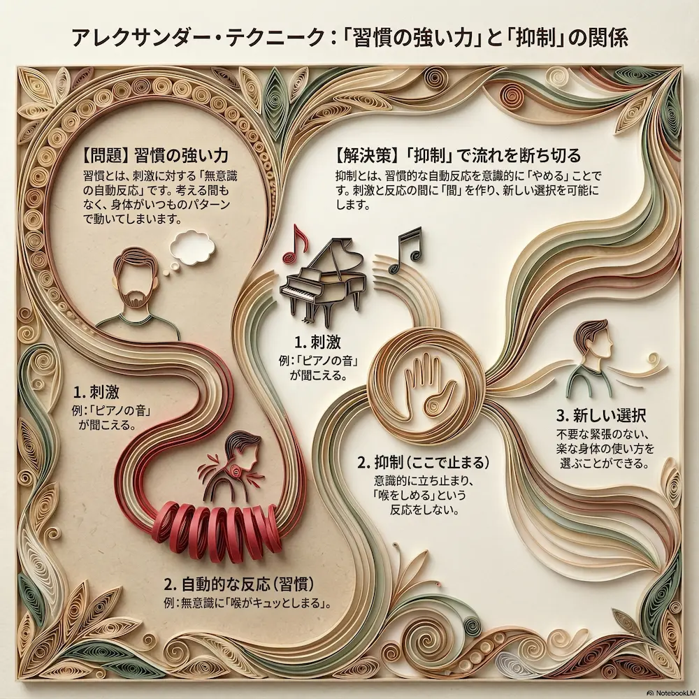 1 182026 アレクサンダー・テクニーク:「習慣の強い力」と「抑制」の関係 「あれ」と「それ」の関係シリーズ。今回は「習慣の強い力」と「抑制」です。 masako 主婦であり串打ちの仕事もするアレクサンダー教師。 アレクサンダー・テクニークのレッスンを東京都目黒区にて楽しくわかりやすく、伝えていきます。 アレクサンダー・テクニークの理解につながるものはなんでもチャレンジ。ということで、現在は、歌(コーラス多め)、ダンス(soul&lock)、パントマイム(基礎)、をやっていますが、やりたいことが増えてきてます。合唱は高校のときから続けていますが、ピッチパイプを買ったのは最近です。これはハーモニカに似ていますが、吹き方によって音が下がってしまうので、ものすごく自分の使い方を試されます。 2023年9月 アレクサンダーテクニークスタジオ東京(ATST)の教師養成講座を卒業 2023年10月 STAT(英国アレクサンダー・テクニーク教師協会)認定教師の資格を取得 神奈川県立生田高等学校卒業 東京理科大学理学部応用数学科卒業 高校・大学・社会人と合唱を続け現在は楽器としての声を勉強中 1970年生まれ 1児の母 LINE Instagram X Facebook Youtube Contact Post Share Hatena LINE Threads note この記事のタイトルとURLをコピーする