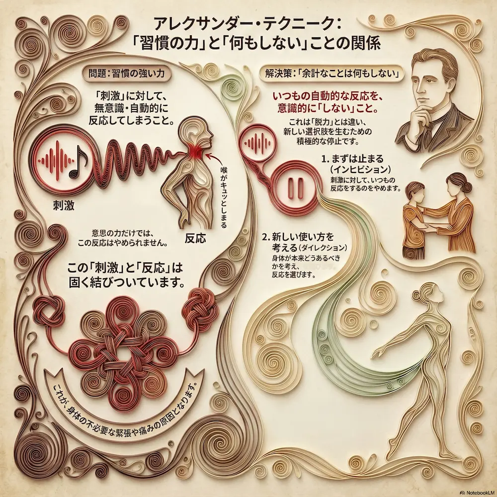 1 222026 アレクサンダー・テクニーク:「習慣の力」と「何もしない」ことの関係 「あれ」と「それ」の関係シリーズ。今回も「習慣の力」と「余計なことは何もしない」です。 masako 主婦であり串打ちの仕事もするアレクサンダー教師。 アレクサンダー・テクニークのレッスンを東京都目黒区にて楽しくわかりやすく、伝えていきます。 アレクサンダー・テクニークの理解につながるものはなんでもチャレンジ。ということで、現在は、歌(コーラス多め)、ダンス(soul&lock)、パントマイム(基礎)、をやっていますが、やりたいことが増えてきてます。合唱は高校のときから続けていますが、ピッチパイプを買ったのは最近です。これはハーモニカに似ていますが、吹き方によって音が下がってしまうので、ものすごく自分の使い方を試されます。 2023年9月 アレクサンダーテクニークスタジオ東京(ATST)の教師養成講座を卒業 2023年10月 STAT(英国アレクサンダー・テクニーク教師協会)認定教師の資格を取得 神奈川県立生田高等学校卒業 東京理科大学理学部応用数学科卒業 高校・大学・社会人と合唱を続け現在は楽器としての声を勉強中 1970年生まれ 1児の母 LINE Instagram X Facebook Youtube Contact Post Share Hatena LINE Threads note この記事のタイトルとURLをコピーする